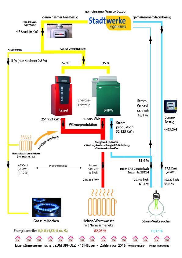 Der Gasanteil für die Stromproduktion und der Gasanteil für den Wärmeverlust müssen ermittelt und jeweils auf den Wärme- und Stromkostenblock verteilt werden. Entsprechnende Beschlüsse hat die Eigentümergemeinschaft gefasst.